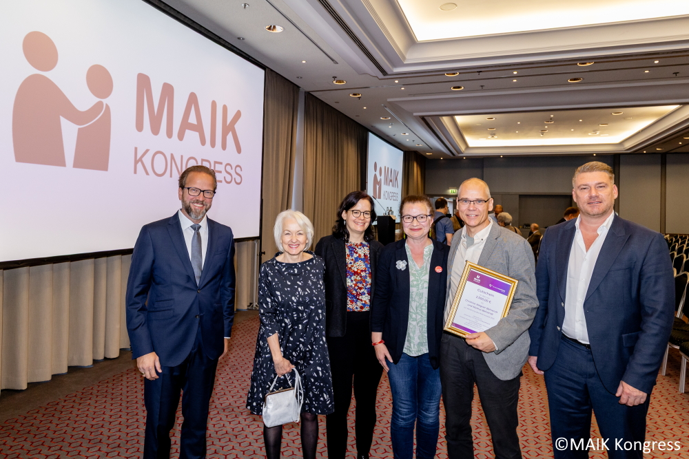 MAIK Award (v.li.n.re.) Christoph Jaschke, Dr. Maria Panzer, Dr. Lena Panzer-Selz, Christine Wagner-Behrendt, Markus Behrendt und Daniel Klein. Foto: MAIK Kongress